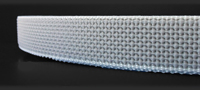 Rolladengurt in grau mit einer Gurtbandstärke von ca. 1,5 mm. Aufzuggurt in Querrippenoptik mit verstärkten Nylonkanten.