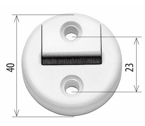 Die Gurtdurchführung rund mit Bürste kann verwendet werden für Gurtbreiten bis max. 23 mm. Das Material besteht aus weißem Hartplastik. Die Gurtführung besteht aus 2 Teilen, die ineinander geschoben werden können. Die Gurtdurchführung hat einen Durchmesser von D= 40 mm. Die beiden Bohrlöcher haben einen Lochabstand von LA = 23 mm.