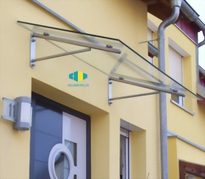 Modern und zeitgemäß ist unser Glas-Edelstahl-Vordach "Edition Pure" aus hochwertigem Verbund-Sicherheitsglas (VSG) TVG 12 mm mit eleganten Edelstahlhalter.